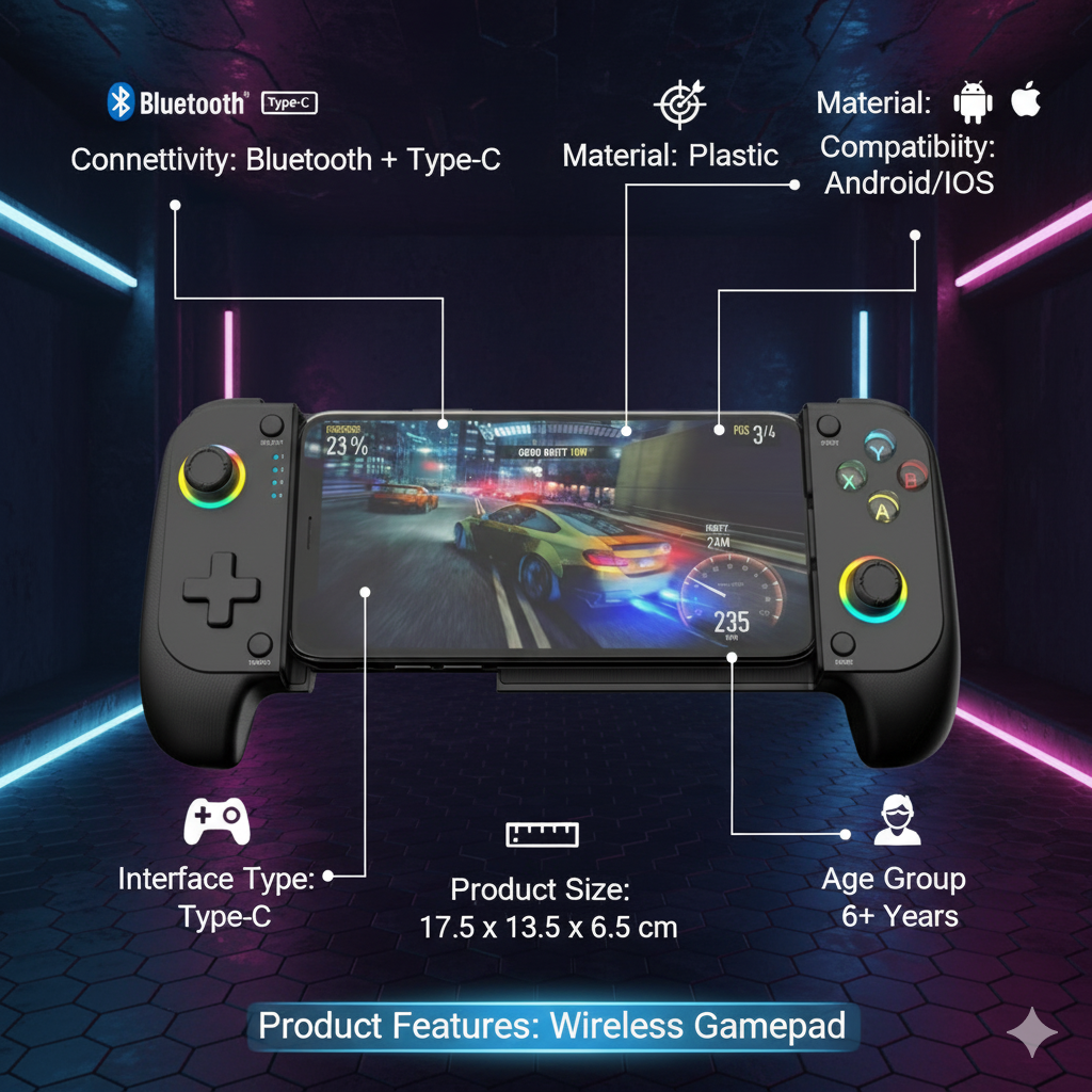 קל, חכם ונמתח – הבקר החדש שלך מתאים לכל טלפון ולכל משחק. חיבור Bluetooth מהיר, תגובה מדויקת ועיצוב ארגונומי שהופך כל שלב לחלק וזורם ⚡