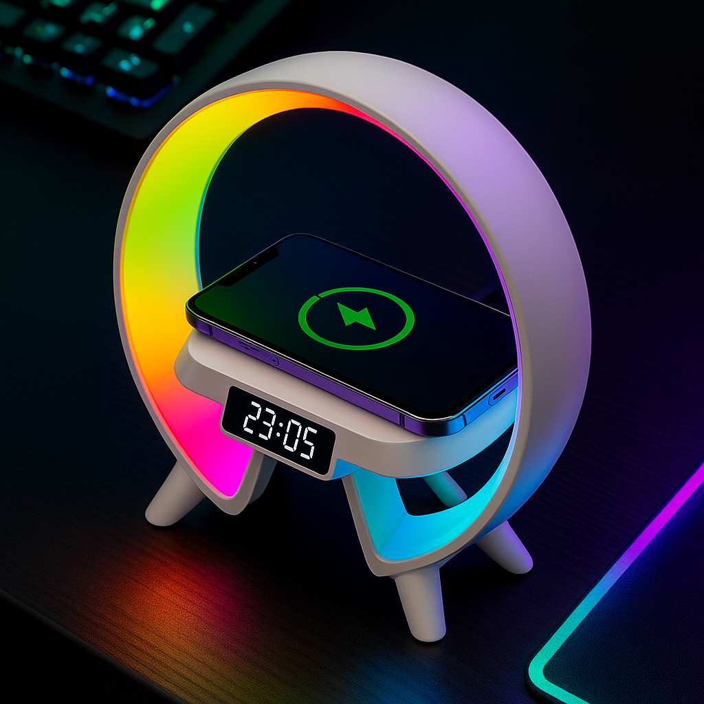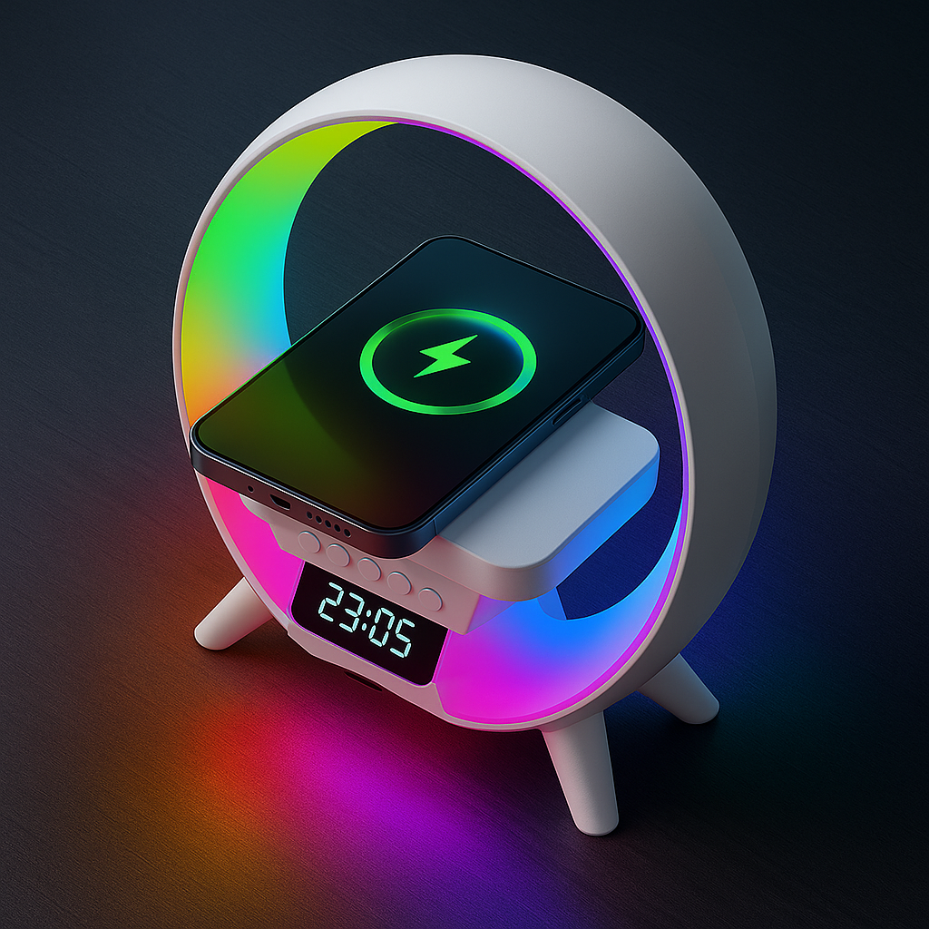 סוף סוף פתרון אמיתי לסדר ליד המיטה — טעינה אלחוטית מהירה, רמקול חכם, תאורה במצב אווירה והכול במכשיר אחד שמחליף 3 מוצרים.