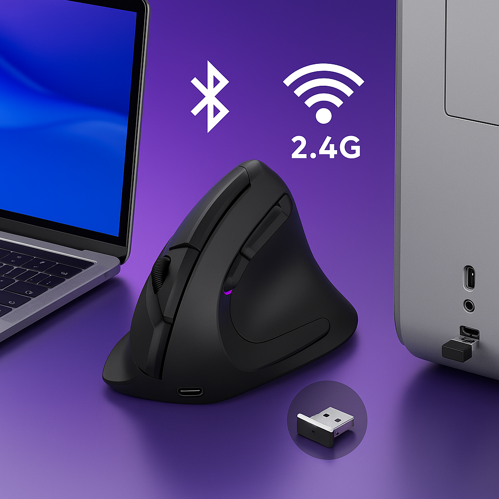 ה־AERION™ ErgoMouse מתחבר לכל מחשב, לפטופ או טאבלט בלי כאבי ראש ובלי מתאמים, יש לך גם Bluetooth וגם USB אלחוטי 2.4GHz, אז תוכל לעבור ממחשב לעבודה למחשב בבית בלחיצת כפתור,החיבור יציב, מהיר וללא ניתוקים, אפילו כשיש כמה מכשירים בסביבה, זה עכבר שמסתנכרן איתך לא אתה איתו.