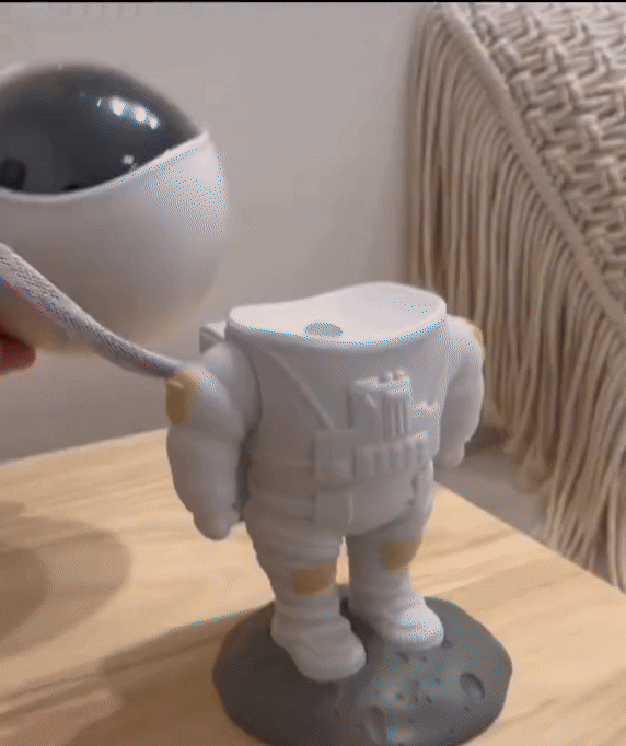 ראש האסטרונאוט מחובר במגנט וניתן לסיבוב מלא, כך שניתן לכוון את ההקרנה לכל מקום – לקיר או לתקרה. פריט עיצובי מושלם.