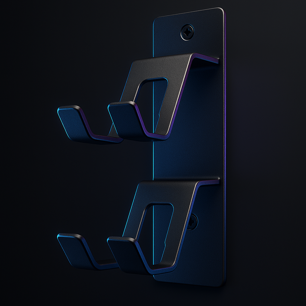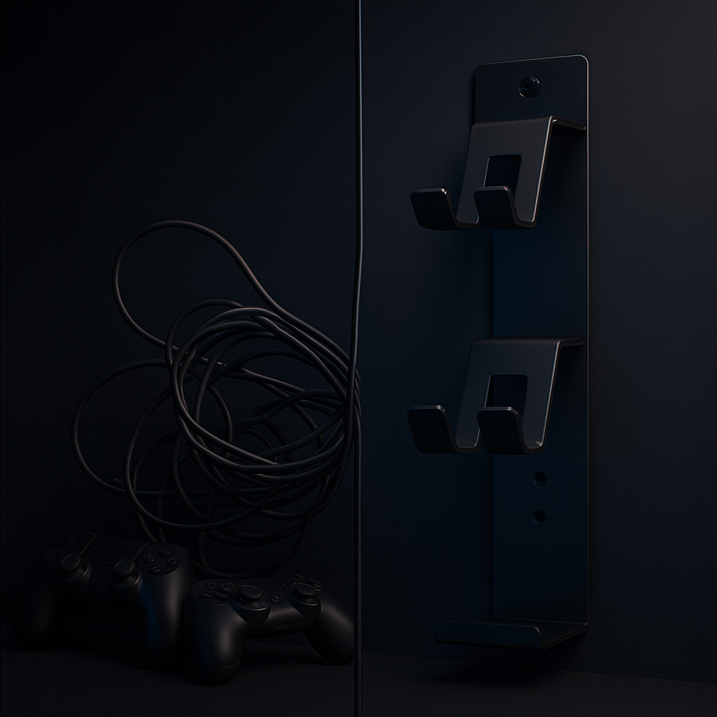 2 שלטים במקום קבוע + אוזניות על וו ייעודי, בלי חיפושים, בלי נפילות ובלי כבלים מסתבכים, הכל מסודר, נגיש ומוכן לשימוש תוך שנייה.
