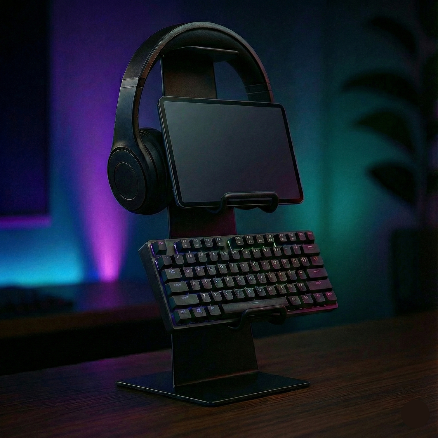 הסטנד מרכז את כל הציוד במקום אחד: שלטים, אוזניות, קונסולה, טלפון או טאבלט. כשאין בלגן – הראש נקי יותר, והגישה לציוד מהירה יותר. זה לא עוד סטנד; זה שדרוג לחוויית המשחק עצמה.