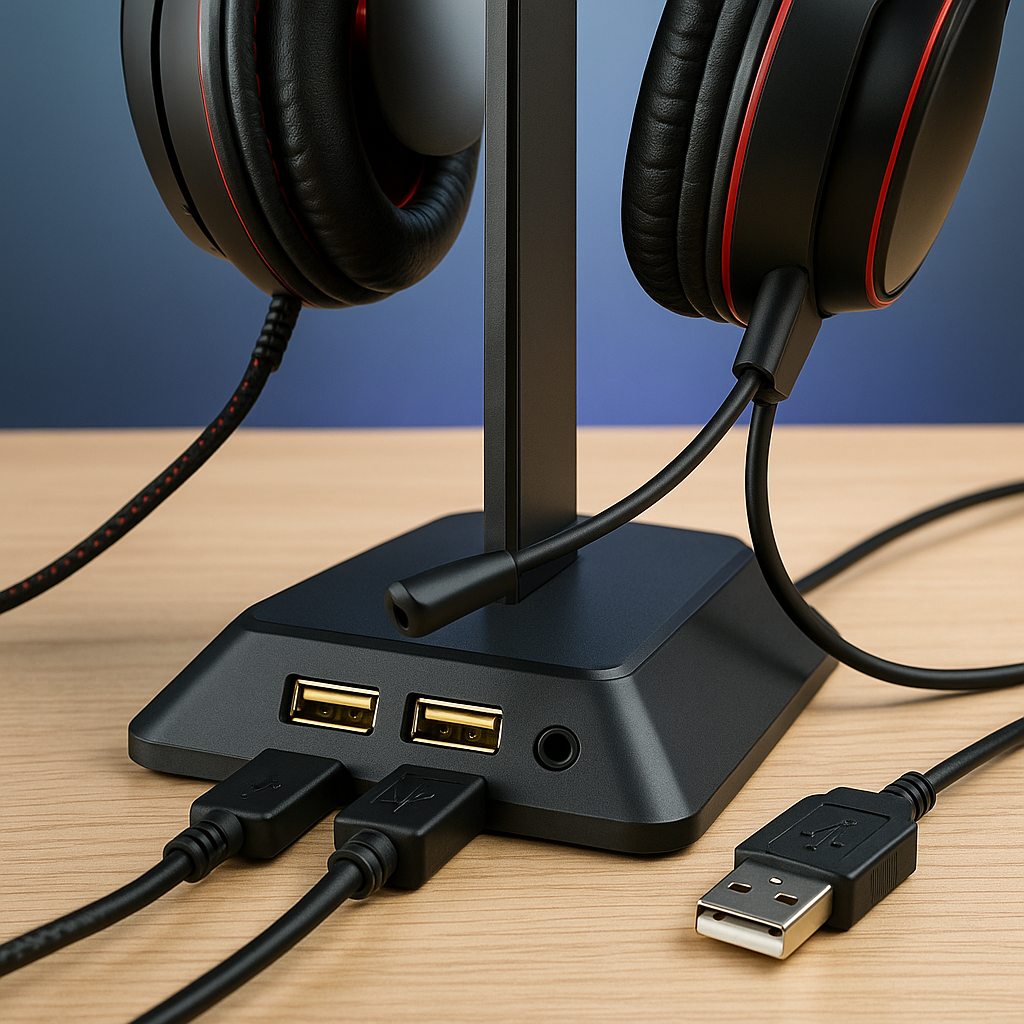 האם אתה מתבאס מכבלים מבולגנים ואוזניות זרוקות? הסטנד הזה עושה סוף לבלאגן — תלייה נוחה, מקום מיוחד לכבלים, ועמדת USB מובנית.