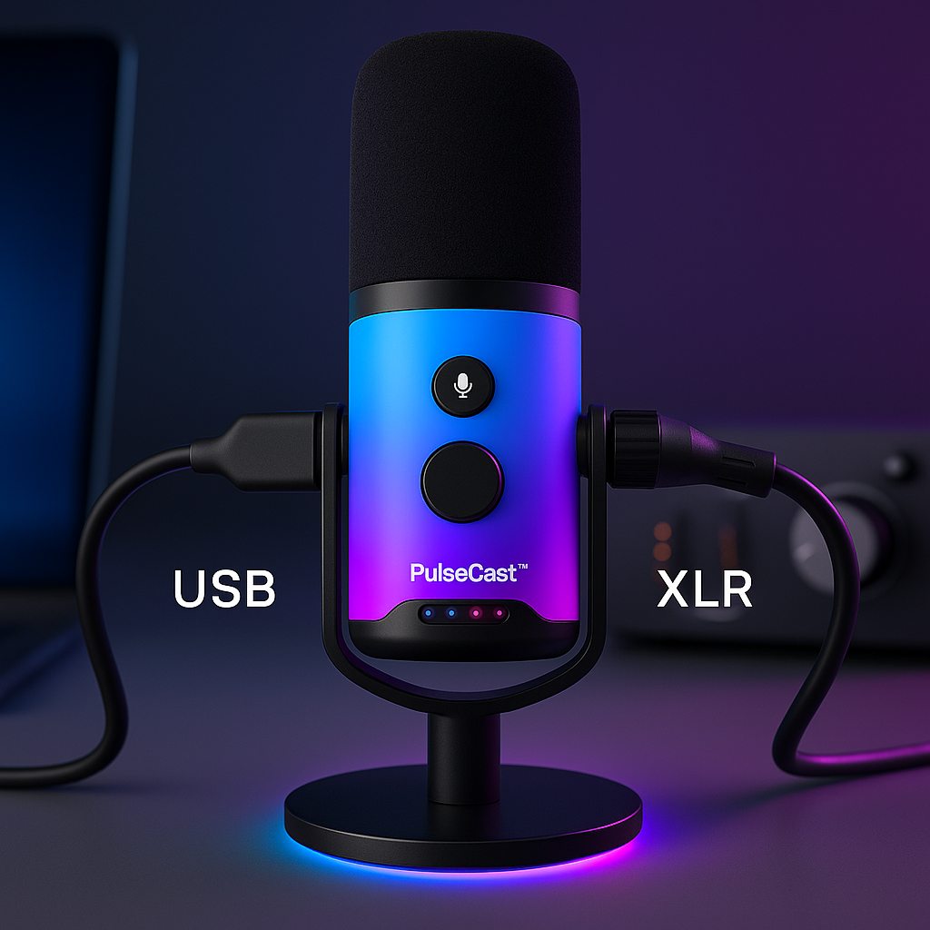 היכולת לעבוד גם ב-USB וגם ב-XLR הופכת את PulseCast™ לכלי גמיש שנכנס לכל סוג של סט-אפ מתחילים או מקצוענים,במצב USB אתה פשוט מחבר למחשב ומתחיל לעבוד אין דרייברים, אין התקנות, הכול Plug & Play,במצב XLR, המיקרופון מתחבר לכרטיס קול ומרים את איכות הסאונד לרמת אולפן אמיתית עם פרה-אמפ מקצועי,זה מושלם לגיימרים בתחילת הדרך שלא רוצים להתחיל בגדול ועדיין נותן להם אפשרות לשדרג בעתיד בלי לקנות מיקרופון חדש,החיבור הדו־מצבי מאפשר להפעיל אותו גם למחשב, גם לטלפון (עם מתאם) וגם למערכות אודיו חיצוניות,זה שם אותך בשליטה מלאה אתה בוחר איך לעבוד, והוא מתאים את עצמו אליך,בנוסף, גמישות כזו מעלה משמעותית את ערך המוצר ומבטיחה שלא תצטרך לשדרג שוב בזמן הקרוב,זה מיקרופון שגדל איתך מלייבים בסיסיים ועד הפקת תוכן מקצועית.